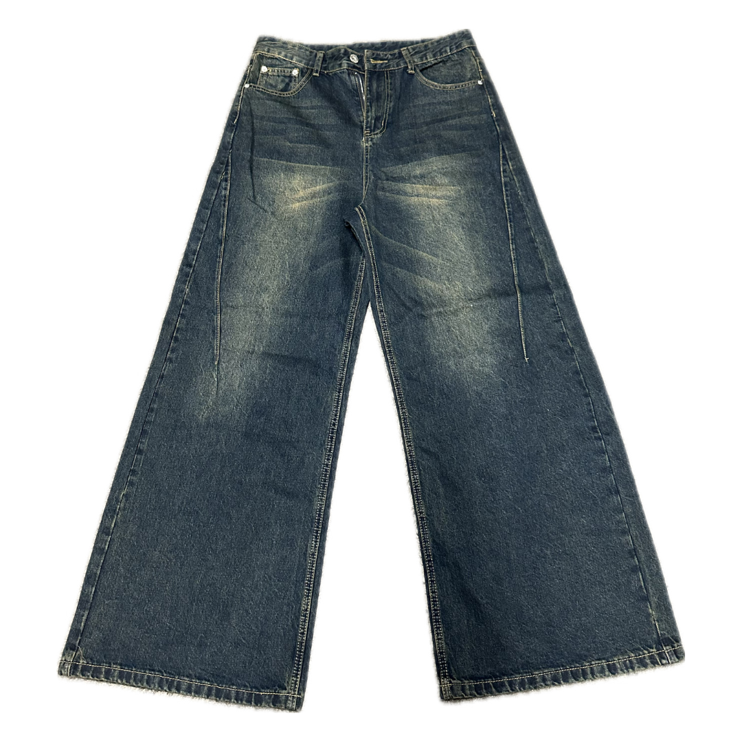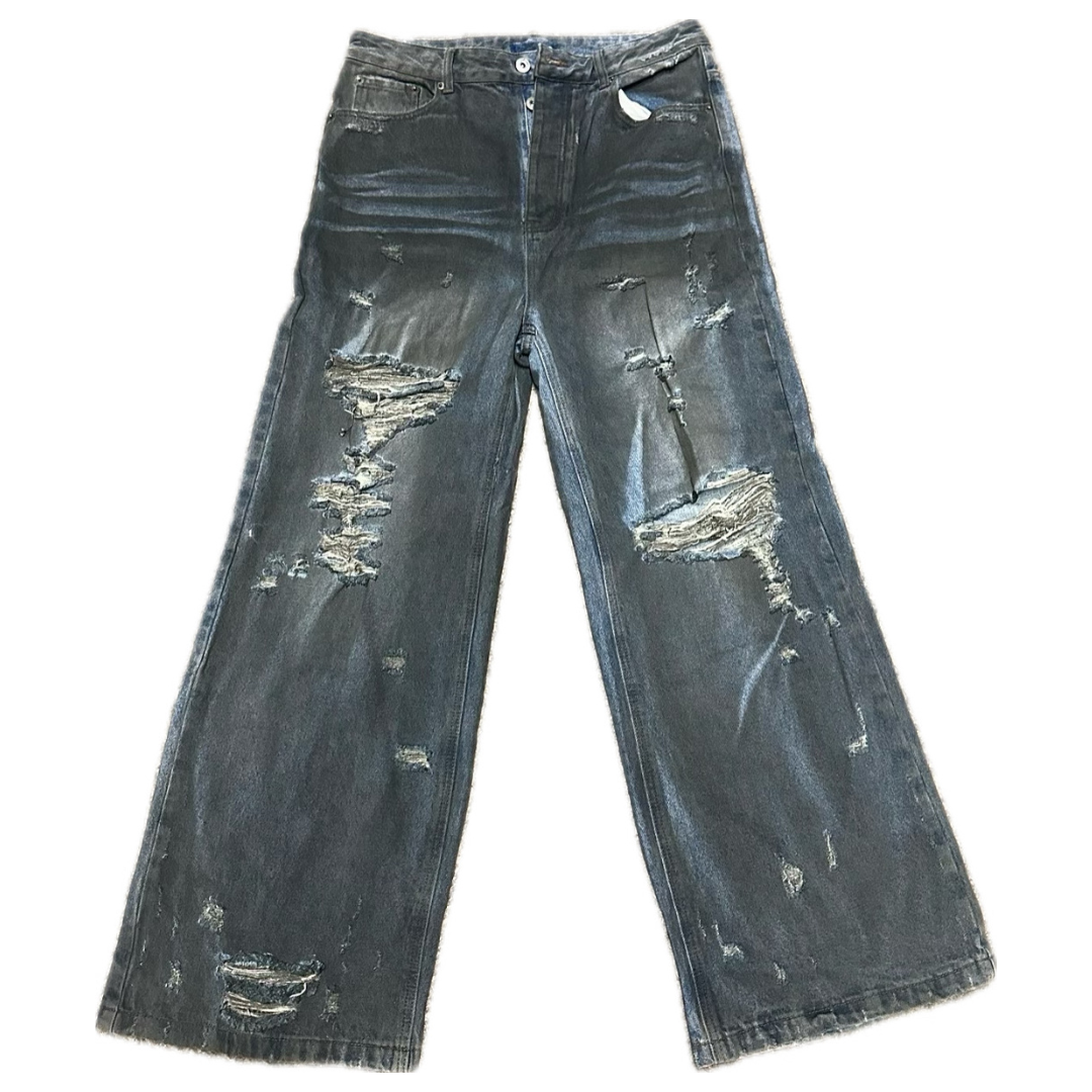 Dark Blue Distressed Baggy Denim.